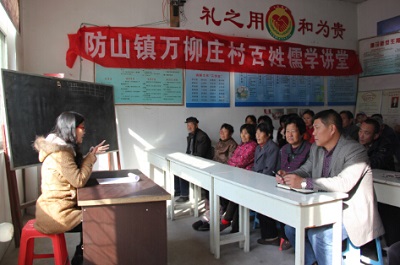 如今在曲阜的乡村、社区里,一村一名儒学讲师、一村一座儒学书屋、一村一台儒学新剧、一家一箴儒学家训已渐成为常态,今年,9月26日,曲阜印发《关于深入推进“百姓儒学”活动的实施意见》,由此拉开全市创建儒学课堂、村村讲儒学的序幕。这项由曲阜市主导、发起、最终实现落地的儒学教育活动,力争在曲阜形成“村村讲儒学 户户颂和风”的新景象。