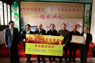 11月22日,中国科学院院士、季羡林基金会理事长潘际銮教授在白鹿洞书院,亲自把季羡林基金会“儒学传承与创新奖”授予九江学院“中华经典的公理化诠释”研究创新团队。九江学院党委书记郑翔在颁奖仪式上致辞,九江学院校长甘筱青代表研究团队领奖。