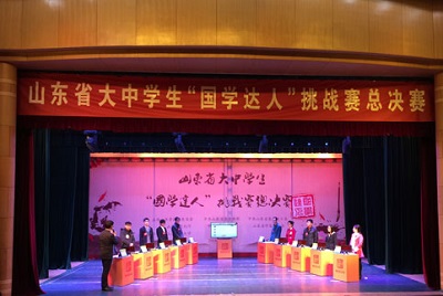 山东省大中学生“国学达人”挑战赛自今年3月启动以来,采取知识性、趣味性、灵活性的活动形式,着力打造“班班都有国学达人”目标,以“层层挑战、层级选拔”的方式,分别在班级、校级、市级多个层面进行,逐级产生“国学达人”。截至11月,山东省17市和50余所高校均举办了不同形式的竞赛,覆盖学生超过100万,在全省青少年中形成了学国学、教国学、品国学、用国学的热潮。