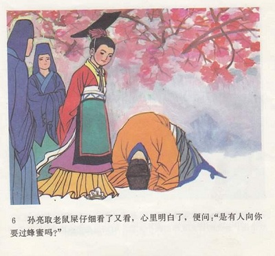 孙亮马上将库吏召来审问鼠屎的情况,问他道:“刚才黄门官是不是从你那里取的蜜呢?”库吏早就吓得脸色惨白,他磕头如捣蒜,结结巴巴地回答说:“是……是的,但是我给他……的时候,里面……里面肯定没有鼠屎。”黄门官抢着说:“不对!库吏是在撒谎,鼠屎早就在蜜中了!”两人争执不下,都说自己说的是真话。