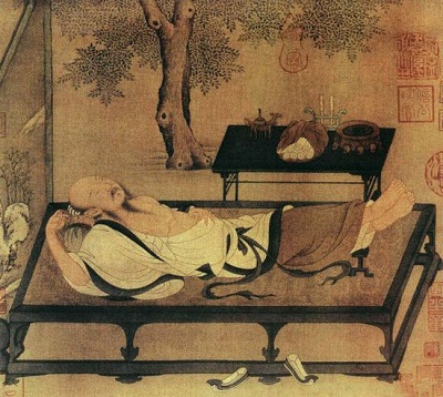 于是,树影紧随着月亮的移动而移动,郑国人则紧随着树影的移动来挪动他的席子,满以为这个可以用来躲避太阳的妙法子也一样可以用来躲避露水。可是却没料到,他和树影一起移动得越来越远了。一夜下来,他的衣服和席子都被露水湿透了。