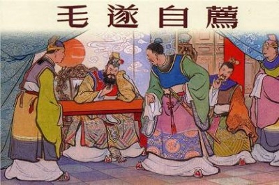 平原君到楚国去之前,召集他所有的门客商议,决定从这千余名门客中挑选出20名能文善武足智多谋的人随同前往。他们挑来挑去最终只有19人合乎条件,还差一人却怎么挑也总觉得不满意。
