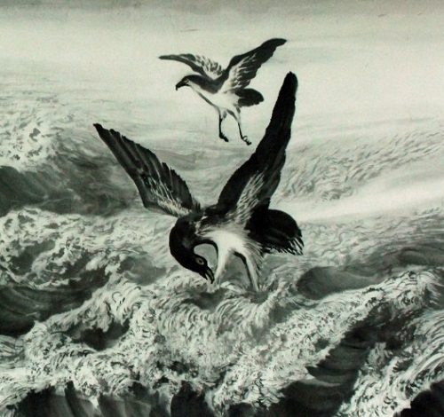 在那个草木不生的地方,有一片大海,是大自然造就的一片辽阔的水域。在这片水域中,生活着一条硕大无比的鱼,这条鱼的身体有几千里宽,而它的身体有多长呢,谁也说不清楚,这条大鱼的名字就叫做鲲。有一天,这条大鱼变作了一只鸟,也同样是大得不可思议。这只鸟的脊背有泰山那样高大,双翅一展,就像是挂在天空的云彩遮住了半个天空,这只鸟名叫鹏。
