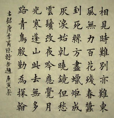 【图语:《无题·相见时难别亦难》,体裁为七言律诗,唐代诗人李商隐所作】