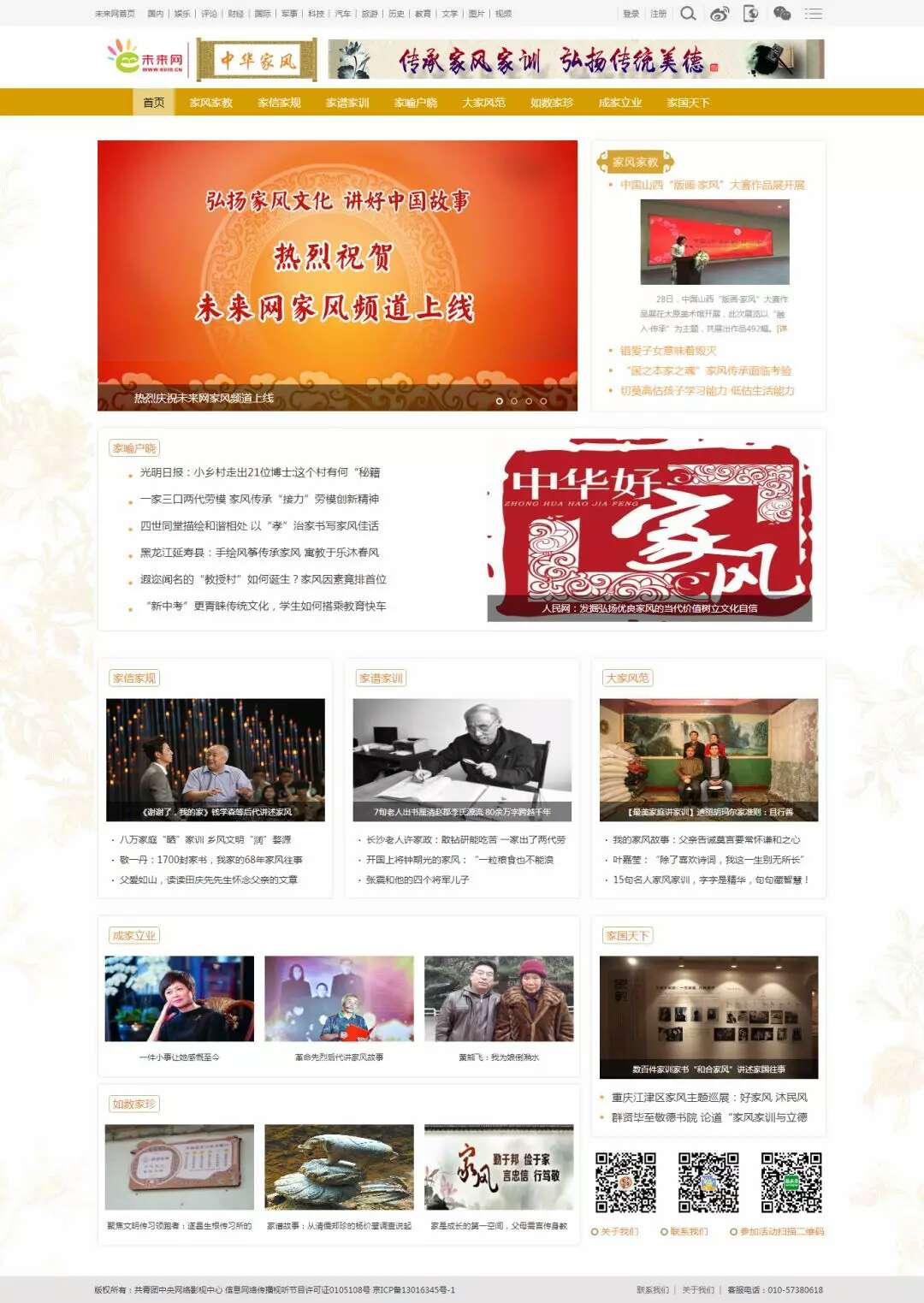 “未来网·家风频道”由共青团中央网络影视中心、未来网主办,旨在深入学习贯彻习近平新时代中国特色社会主义思想,弘扬中华优秀传统文化,践行社会主义核心价值观,扎实做好对青少年的思想引领工作,坚守中华文化立场、传承中华文化基因,立足于在少年儿童中弘扬中华优秀传统文化、提升思想道德素质和培育践行社会主义核心价值观,使中华民族最基本的文化基因与当代文化相适应、与现代社会相协调,真正做到“弘扬家风文化,讲好中国故事”。