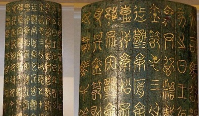 【简介】:一九五七年出土于安微省寿县,是战国中期楚国器,青铜制成,形似剖开的竹节,是当时楚怀王发给受封在湖北鄂城的鄂君启的水、陆通行符节。