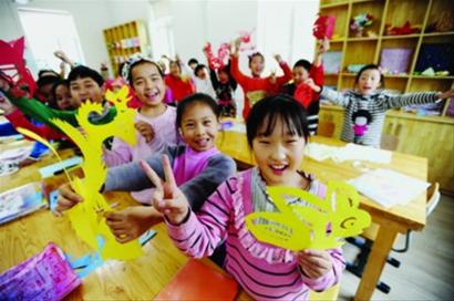 【图语:沈阳铁路第四小学的学生在上剪纸课】