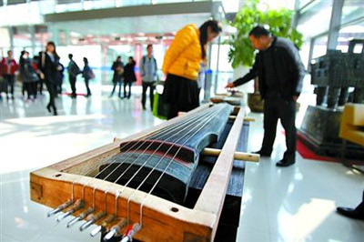 【图语:在华师大非遗展示区,古琴的制作及构造吸引师生驻足了解。】