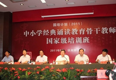 江苏师范大学党委书记徐放鸣说:“经典是人类智慧的结晶,是启迪人心、久经历史考验的教科书,学校已连续5年组织‘经典诵读骨干教师培训’,就是要把有价值的文化经典灌注到教师心中。”