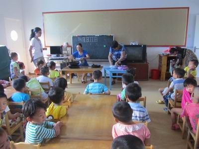 在幼儿园的区角“农家乐”,摆放着如今已经不多见的当地小石磨、小匾、小篓等农家农具,蒸笼、提盒、水瓢等农家炊具,布置陈列着孩子们用作物的叶子、种子巧拼的动物图案,用菜籽、豆子发芽长成的小秧小苗塑料瓶。“亲亲蔬菜”系列园本课程注重培养幼儿的观察与操作能力。“瓜果世界”让幼儿认识各种瓜果,了解其生长过程,并利用瓜果制作手工艺品,提高幼儿的审美能力。“有趣的种子”引导幼儿认识各种各样的农作物种子,了解其特性,利用农村特有的资源柳条、麦秆等进行编织艺术活动,在其基础上运用各种种子进行制作艺术品,培养幼儿的审美能力。孩子们在这里构思巧作,种植养殖,把农家“五谷”、“六畜”搬进了幼儿园。