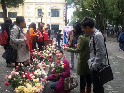 11月8日,“有我们,你不再孤单——誉晔加油玫瑰义卖活动”在华中师大学子餐厅门前冒雨如期进行。短短半天,20余位博士生就卖出了1200多枝玫瑰,募集爱心款两万多元。11月9日,义卖活动地点改成了人流密集的武汉市群光广场前,一群平时不苟言笑的博士生一边发放传单,一边唱歌跳舞,吸引过往路人。