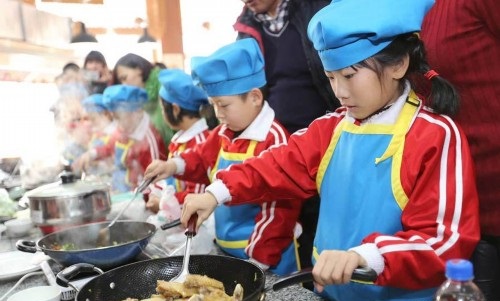 【图语:孩子们在家长指导下秀厨艺】