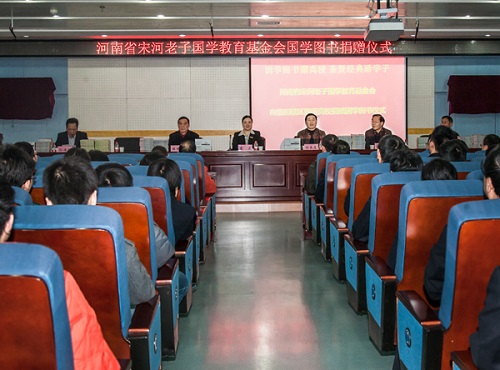 近日,河南省宋河老子国学教育基金会在洛阳、新乡等地向河南科技大学、河南师范大学等豫西、豫北21所高校捐赠《道德经》等国学图书12580册,价值近50万元。至此,今年宋河基金会已向郑州大学等河南省71所高校捐赠国学图书35000册,价值150万元。该基金会计划再向全省30所高校继续捐赠国学图书,完成向河南省一百余所高校捐赠5万册国学图书的 “国学图书赠高校,圣贤经典励学子”大型公益活动。
