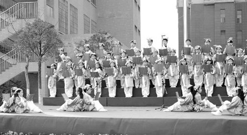 2014年年末,景苑小学第四届读书节落幕。这是读书节上的经典诵读一幕,有33个班级轮番上场诵读,让全校师生接受了一次传统文化的洗礼。