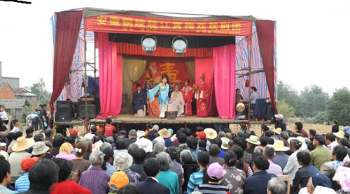 日前,在铜陵县金塔村文化广场上,人山人海、十分热闹。原来,听说有剧团要来演出,村里的男女老少早早就搬来板凳在演出地点等候。演出一开始,临时搭建的戏台就被围了个水泄不通。表演中,皖江黄梅戏剧团为村民演出的一部《薛丁山征西》,引得现场观众一片叫好声。据介绍,《薛丁山征西》这部经典黄梅戏剧目,主要讲述的是子女孝亲等内容。