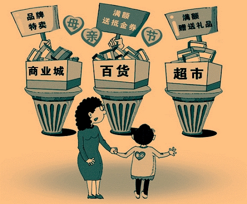 在我市的几家大型商场内,记者看到无论是黄金柜台,还是女装柜台旁都摆放着“母亲节促销”的活动海报。某黄金专柜的营业员说,母亲节即将来临,商场要抓紧时间搞活动。在该专柜前,记者看到黄金价格是258元/克,比平时优惠了10元/克,消费者对黄金的购买热情很高。“我妈妈平时很节俭,今年想借母亲节给她买一个金挂坠,也让她洋气一把。”母亲节还未到,刚参加工作的小波为自己的妈妈挑选好了礼物。