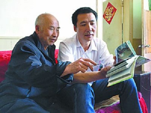 【图语:王瑞全正在陪李万良老爷子一起翻看家庭相册】