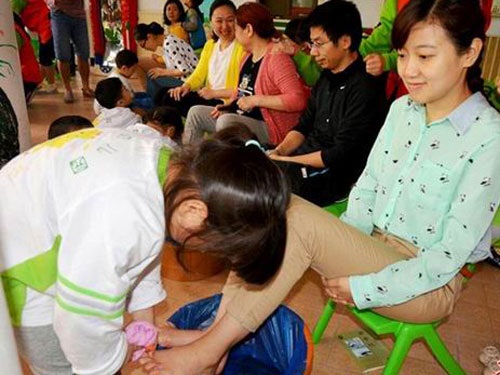 【图语:长沙幼儿园传递孝道精神:萌宝贝为妈妈洗脚】