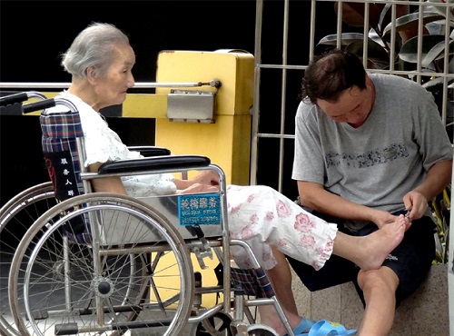 为了更好地照顾婆婆,她让婆婆和自己睡在同一个屋,经常夜里起床帮婆婆换尿片。婆婆大小便失禁,经常会把大便拉到裤子上、被褥上,她就经常帮婆婆换洗沾满粪便的衣服、被褥。由于长期卧床,婆婆还会出现便秘的情况,为了让婆婆能舒服一点,她就用手指把干结的大便抠出来。由于婆婆不会咀嚼食物,刘文华每餐都要为她做特别的饭菜,要把青菜和肉剁得又细又碎,然后放在一起煮,煮得稀稠合适,方便婆婆吞咽。医生说要让婆婆多锻炼多走动有助于康复,刘文华就每天扶着婆婆在屋子里一圈一圈的走路。婆婆无法外出理发,她就买来理发工具自己帮婆婆理发。