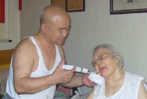 6月30日下午,谢春生拿到电动足浴盆后,就让81岁的母亲享受了一次。看着母子俩开心的笑容,市民防办的工作人员也开心地笑了。