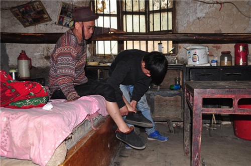 当天吃过午饭后,冉成飞还是放心不下家里的父亲,于是又急急忙忙赶到了家里。记者也正好借此机会走进了冉成飞的家,见到了他瘫痪在床的父亲,了解到了十年来这个孝子与父亲的故事。