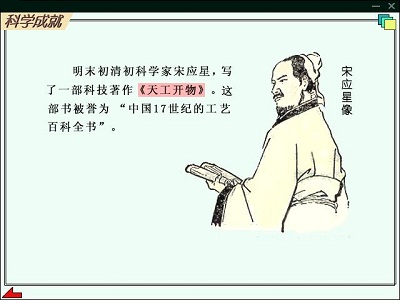 宋应星,明朝万历十五年(公元1587年)出生于江西奉新县,大约在清顺治年间(公元1661年前后)去世。是明代(公元1368年至1644年)杰出科学家,被誉为“中国的狄德罗(Denis Diderot,18世纪法国博学多才的思想家)”。