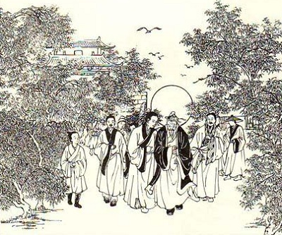 今天是孔子的五十六岁寿诞之日,他怕蘧伯玉为其庆寿,惊扰了主人,便一大早带领弟子们出城郊游。不料细心的颜回却早有准备、寿酒、寿桃、寿糕,还有夫子最喜欢吃的几样菜肴,一应庆寿的物品、器具准备得完完全全,并全都带到了树林来,这怎能不令夫子无限快慰和心花怒放呢?