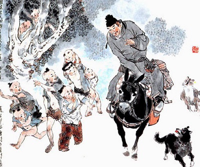 【图语:《回乡偶遇》,体裁为七言绝句,唐代诗人贺知章所作】